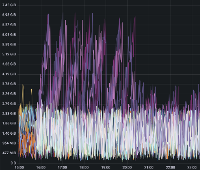 트래픽 양이 작은 job부터 하나씩 띄우기 시작했고, 마지막으로 가장 많은 job을 실행시키자 이슈가 발생하기 시작했다.